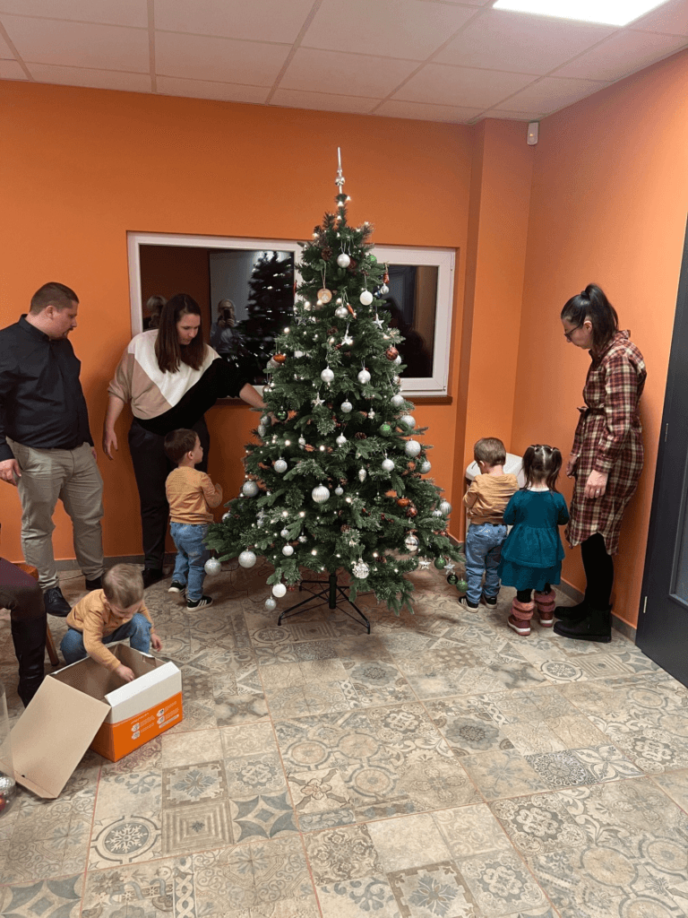 Az új csarnok impozáns Reneszánsz termében izgalmas várakozás töltötte be a délutánt. Agroláncos gyermekek, szülők és kollégák közösen díszítették a karácsonyfát, miközben a levegőben ott lebegett a kérdés: mikor érkezik már a piros ruhás vendég?