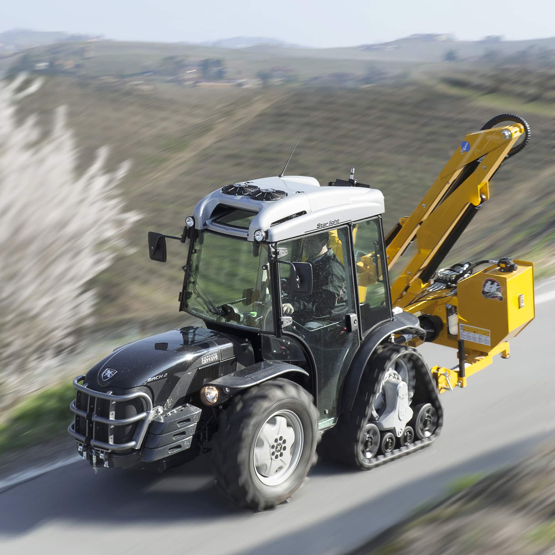 Az Antonio Carraro MACH 4 R egy kompakt traktor, speciális gumihevederes kerék kialakátásának, derékcsuklós kormányzásnak és szabadalmaztatott ACTIO alváznak köszönhetően, kiváló manőverezhetőséget és stabilitást biztosít szűk helyeken és egyenetlen terepeken. Erőteljes motorral és fejlett hidraulikus rendszerrel rendelkezik, amely sokoldalú megoldásokat kínál mezőgazdasági és kertészeti feladatokhoz.