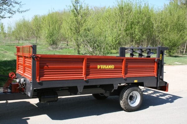 A D’Eusanio DRSL 50 nagy kapacitású szüretelő pótkocsi, amely kifejezetten nagy ültetvények számára készült. Erős szerkezete és hatékony teljesítménye biztosítja a folyamatos munkavégzést.