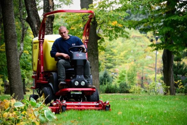 Nagy teljesítményű, felszívóturbinás professzionális önjáró fűnyíró és területkarbantartó multifunkciós gép, amelyet széleskörű zöldterületek, parkok, ipari területek és kertek hatékony ápolására terveztek.