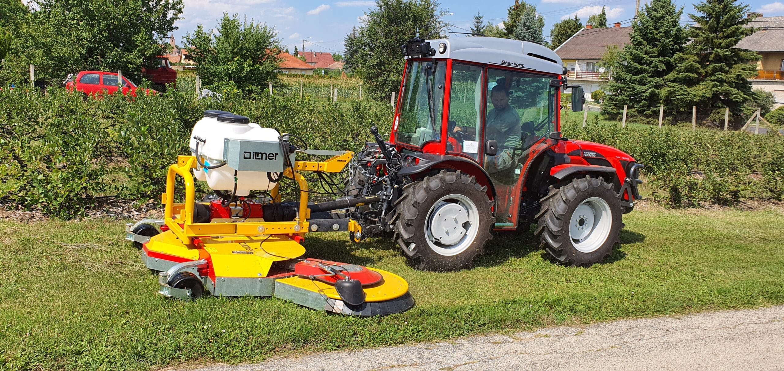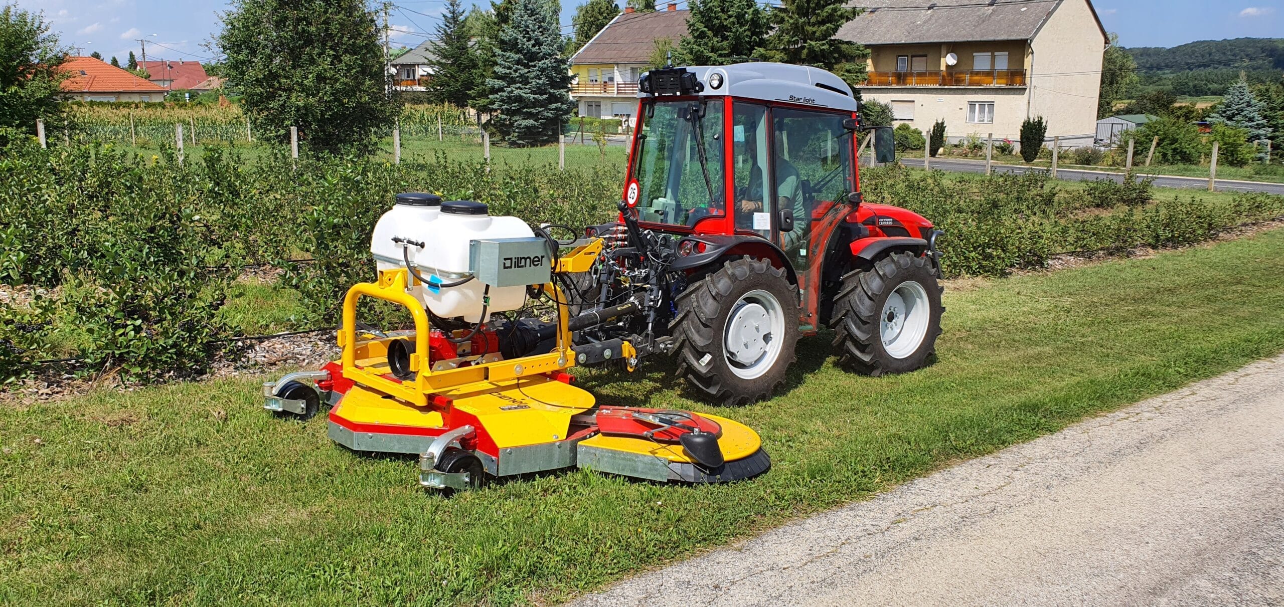 Pálcás vezérlésű automata vágófej kitérítés, soraljvegyszerező egység, automatikus vezérlésű fúvókák, kardántengely szabadonfutóval, vonóhorog és meghatás a mulcsozó-permetező összeállításhoz, nagyobb méretű kerekek