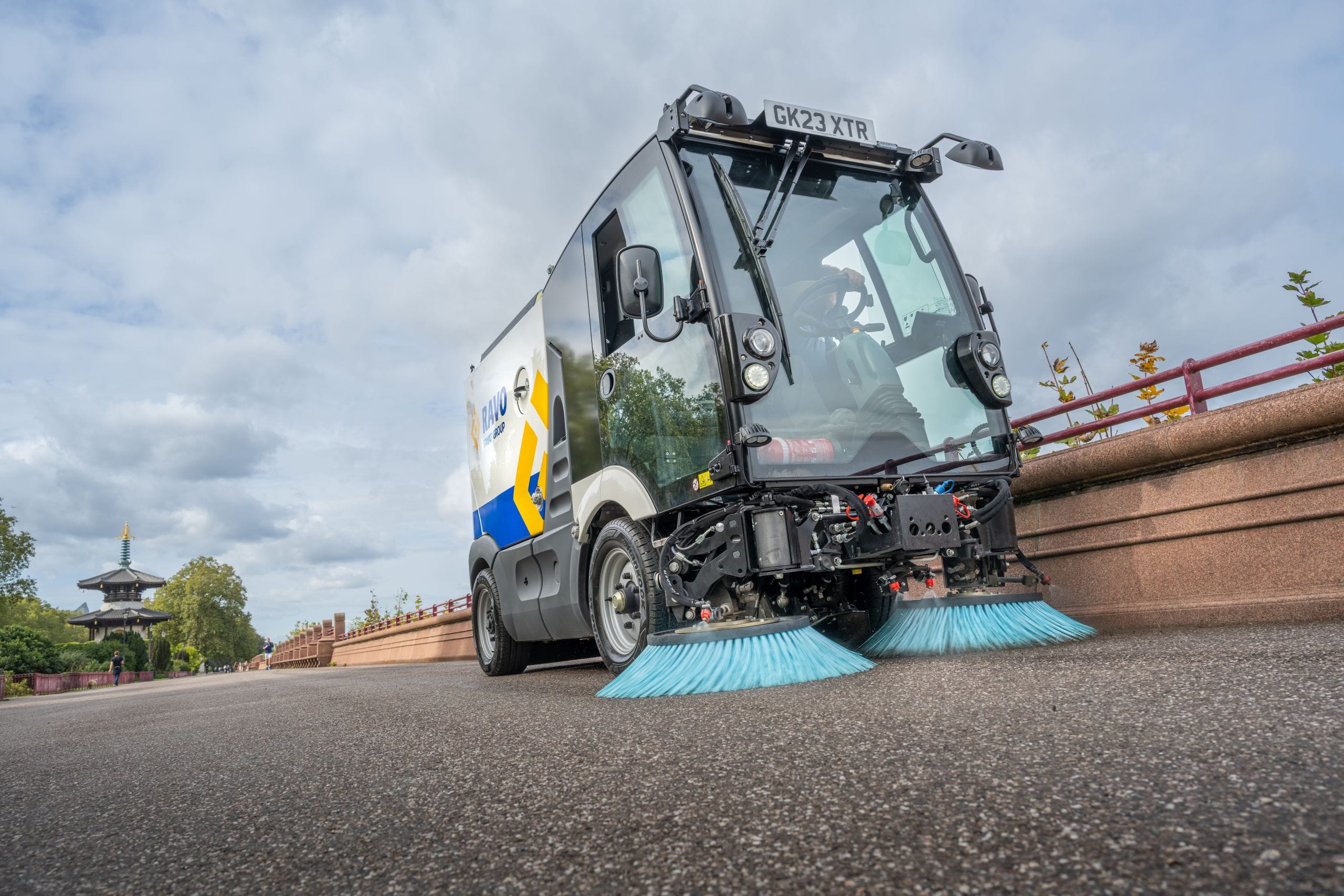 Kompakt utcai seprőgép, amely kiemelkedő tisztítási teljesítményt és rugalmasságot kínál városi környezetben.