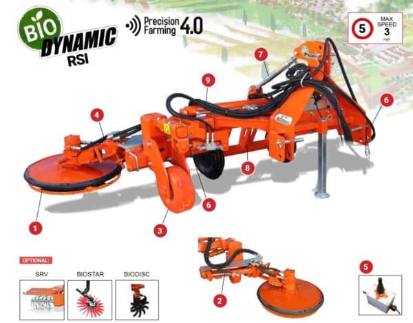 Innovatív, egyoldali, elülső függesztésű, széles törzstisztító, ideális szőlőültetvények és gyümölcsösök törzsének hatékony és precíz tisztítására.