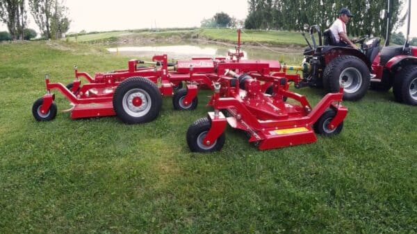 Speciális, nagy munkaszélességű, traktorhajtású fűnyíró brendezés