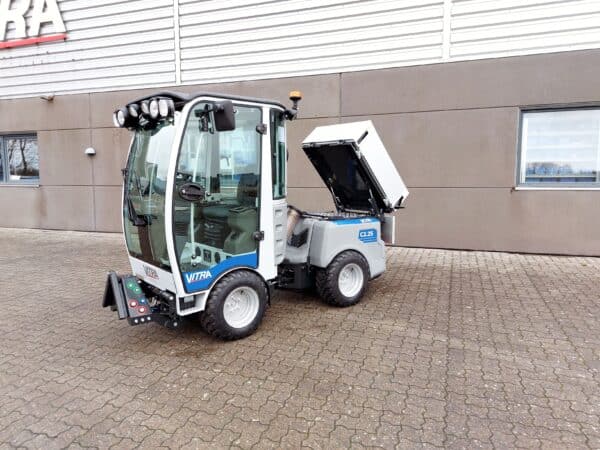 A Vitra C2.25 multifunkcionális gép kis méretével, mégis kiemelkedő teljesítményével ideális megoldás járdák, kerékpárutak, parkok és szűk városi terek karbantartására. A 25 lóerős Yanmar dízelmotorral hajtott modell állandó összkerékhajtással és hidrosztatikus hajtással rendelkezik, biztosítva a sima és erőteljes működést. Kényelmes XXL Comfort fülkéje kiváló kilátást nyújt, ergonomikus kialakítással. A gép gyorsan, 1-2 perc alatt felszerelhető a több mint 50 különféle munkaeszközzel. A hosszú szervizintervallumok, alacsony fenntartási költségek és a könnyű karbantartás további előnyt jelentenek. A Vitra C2.25 kiváló választás minden évszakra és feladatra.
