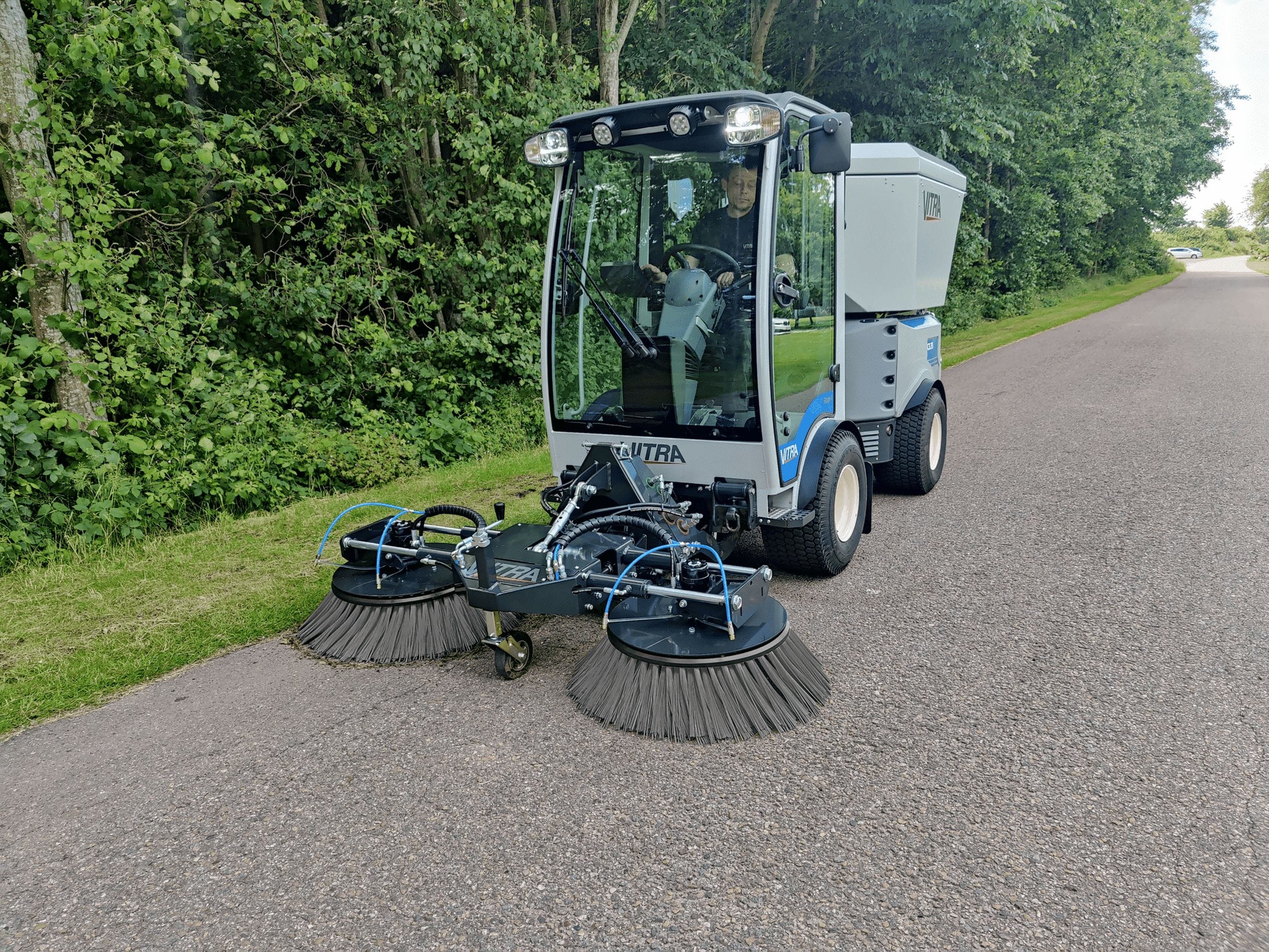 A Vitra C3.55 egy nagyobb kategóriájú multifunkciós gép, amelyet kifejezetten nagy igénybevételre terveztek. A 36 kW (50 LE) teljesítményű Caterpillar dízelmotor gondoskodik a kellő erőről minden évszakban – legyen szó hóeltakarításról, gyomirtásról, seprésről vagy fűnyírásról. Az automatikus összkerékhajtás és a 40 km/h-s végsebesség dinamikus munkavégzést tesz lehetővé. A kabin csendes, ergonomikus, opciósan légkondicionálóval, rádióval és tolatókamerával is felszerelhető. A hidraulikus rendszer nagy teljesítményű, 75 l/250 bar nyomással, számos munkaeszköz kiszolgálására alkalmas. Ideális választás városüzemeltetőknek, ipari parkoknak, közszolgáltatóknak.