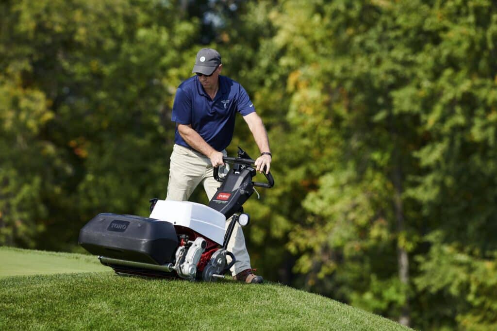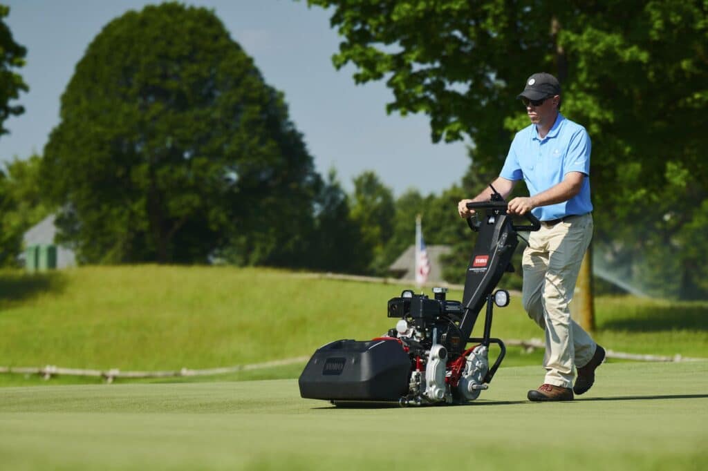 Elsősorban golfpályák illetve füves teniszpályák nyírására alkalmazható gyalogkíséretes greenvágó..